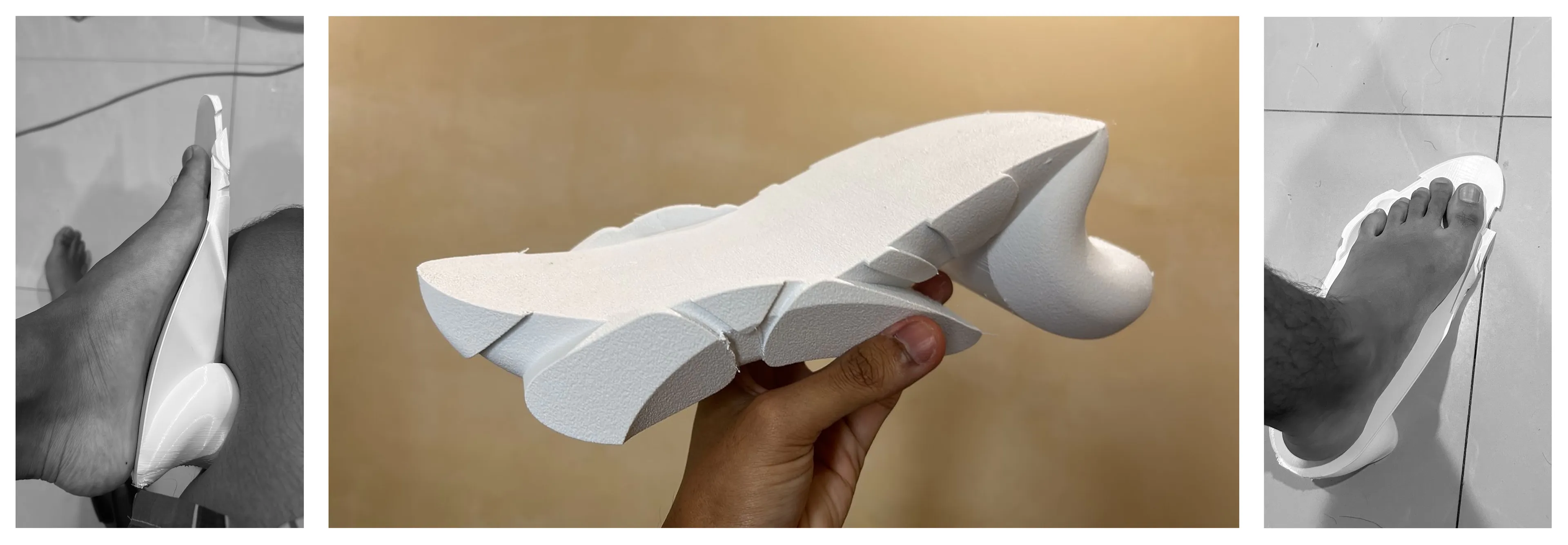 To reach that comfort level the team explored industrial foam moulding in China, where factories quoted mould costs in the range of 500–1000 USD, which became difficult to justify for a run of only about twenty five pairs.