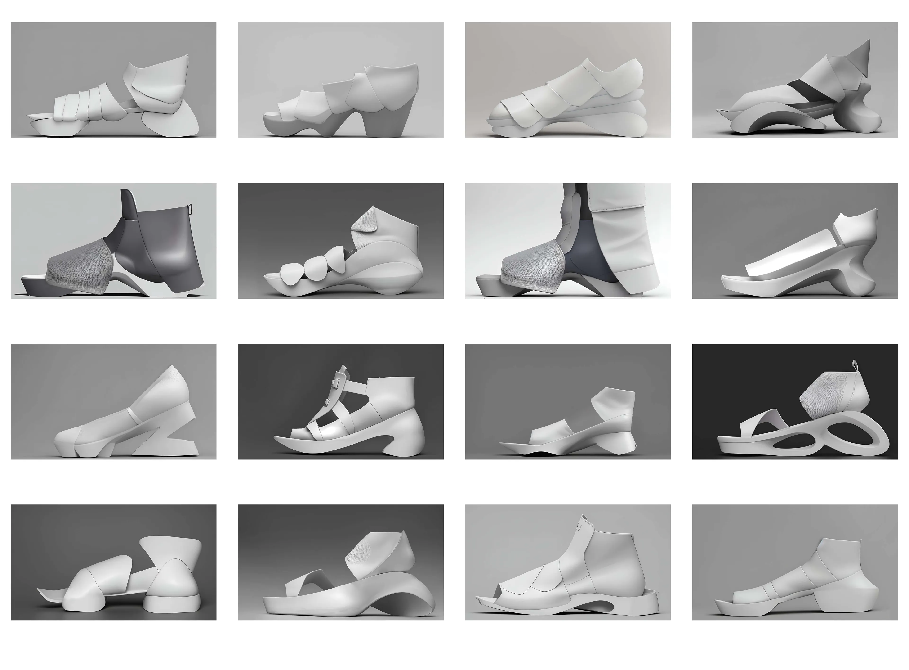 Fioren, assistant to Indonesian fashion designer Adrian Gan, approached me to design heels for a major show where the footwear needed to carry as much narrative weight as the clothes. The moodboard she shared combined cage like structures wrapped around thick socks, stone like shells around the foot, and sharply folded garments that behaved like soft architecture, all inside a dark, ritual atmosphere. They asked me to design the shoe as an expressive material system in direct conversation with the body rather than a neutral accessory.