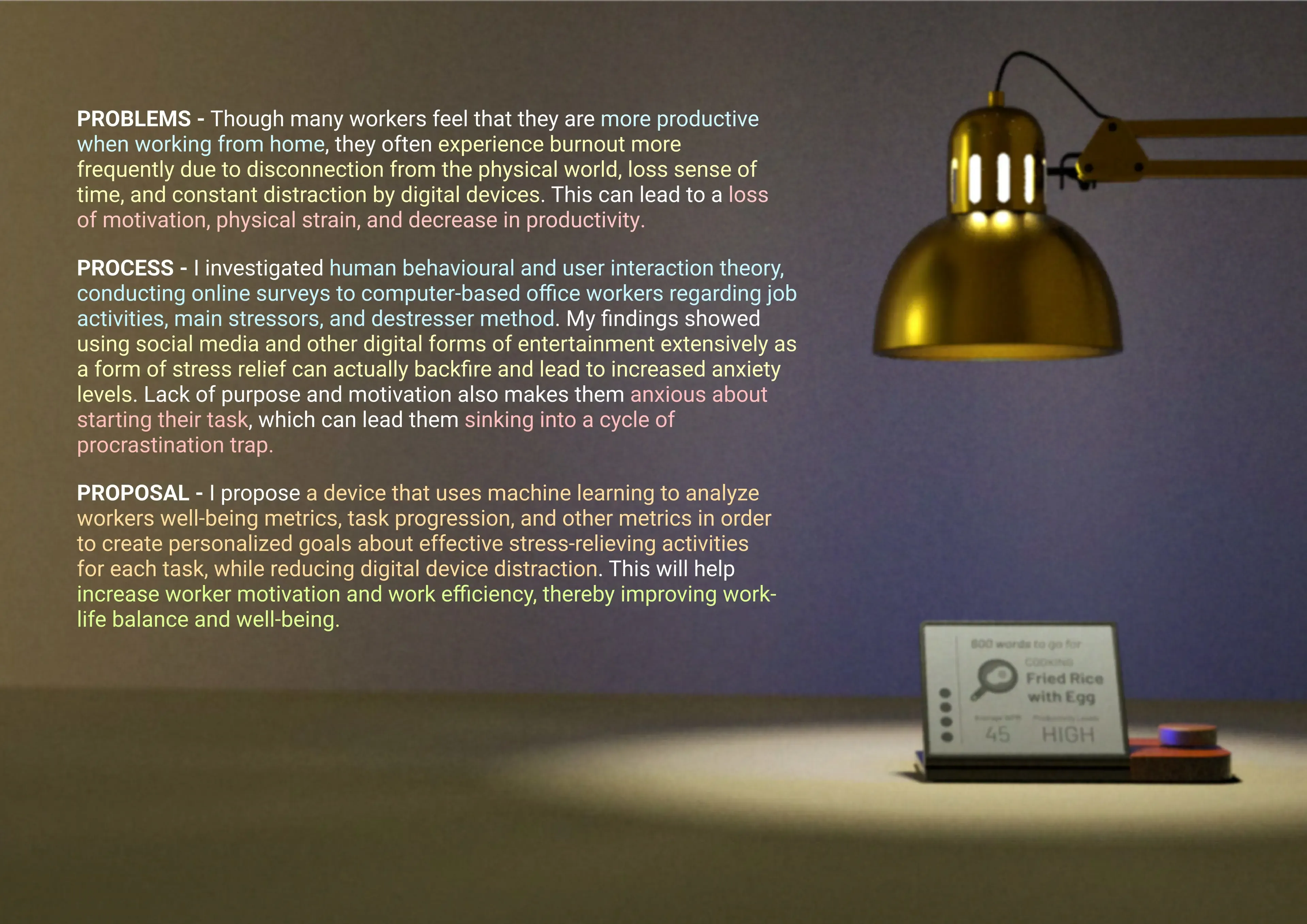 KARYA MACHINA explores the potential of handheld technology to transform mundane and messy routines into actionable progress. It acts as a companion for chaotic daily lives.