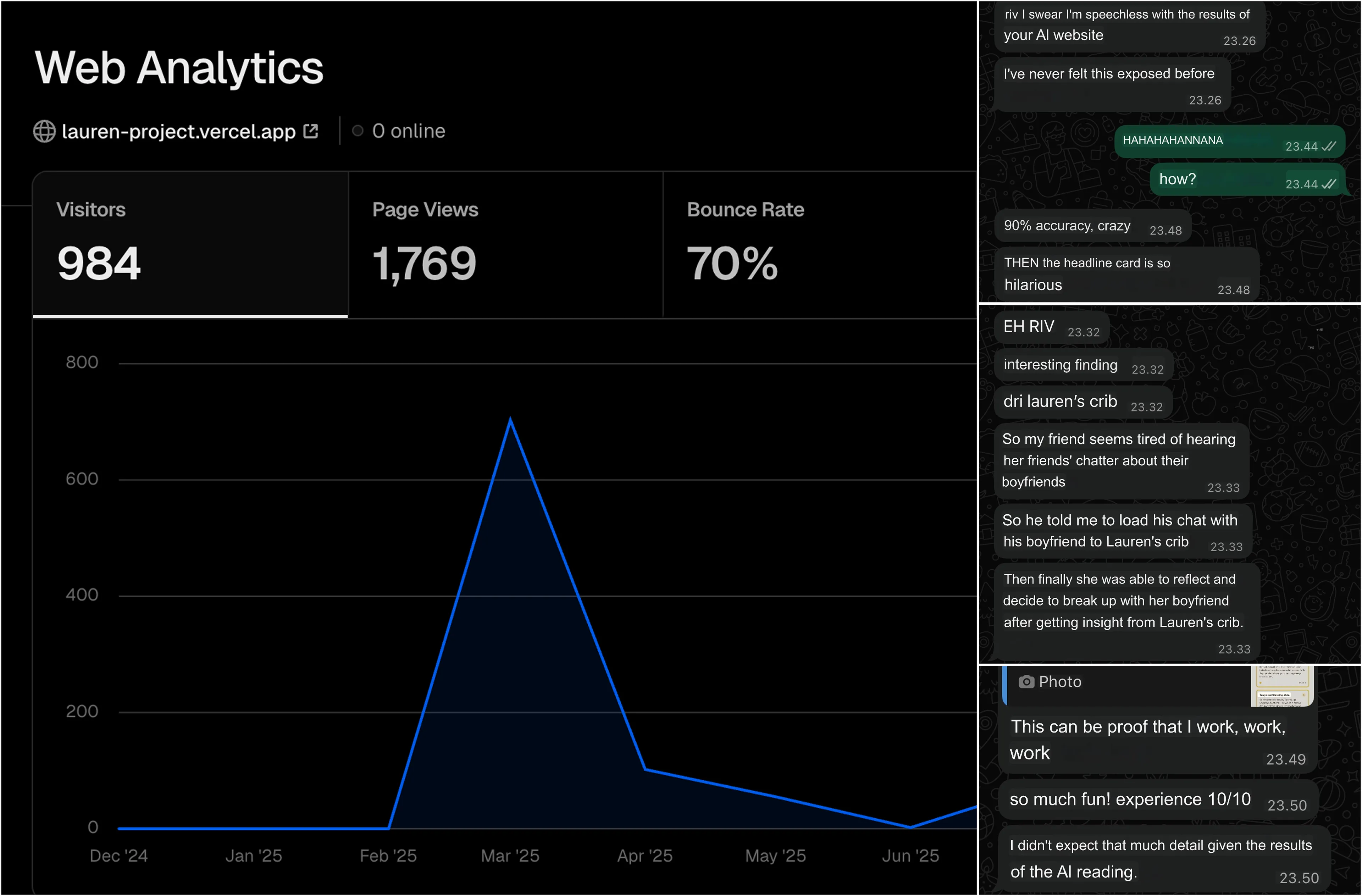 During an informal pilot test I shared Lauren’s Crib with friends through my Instagram story and asked them to try it with their real chat logs.