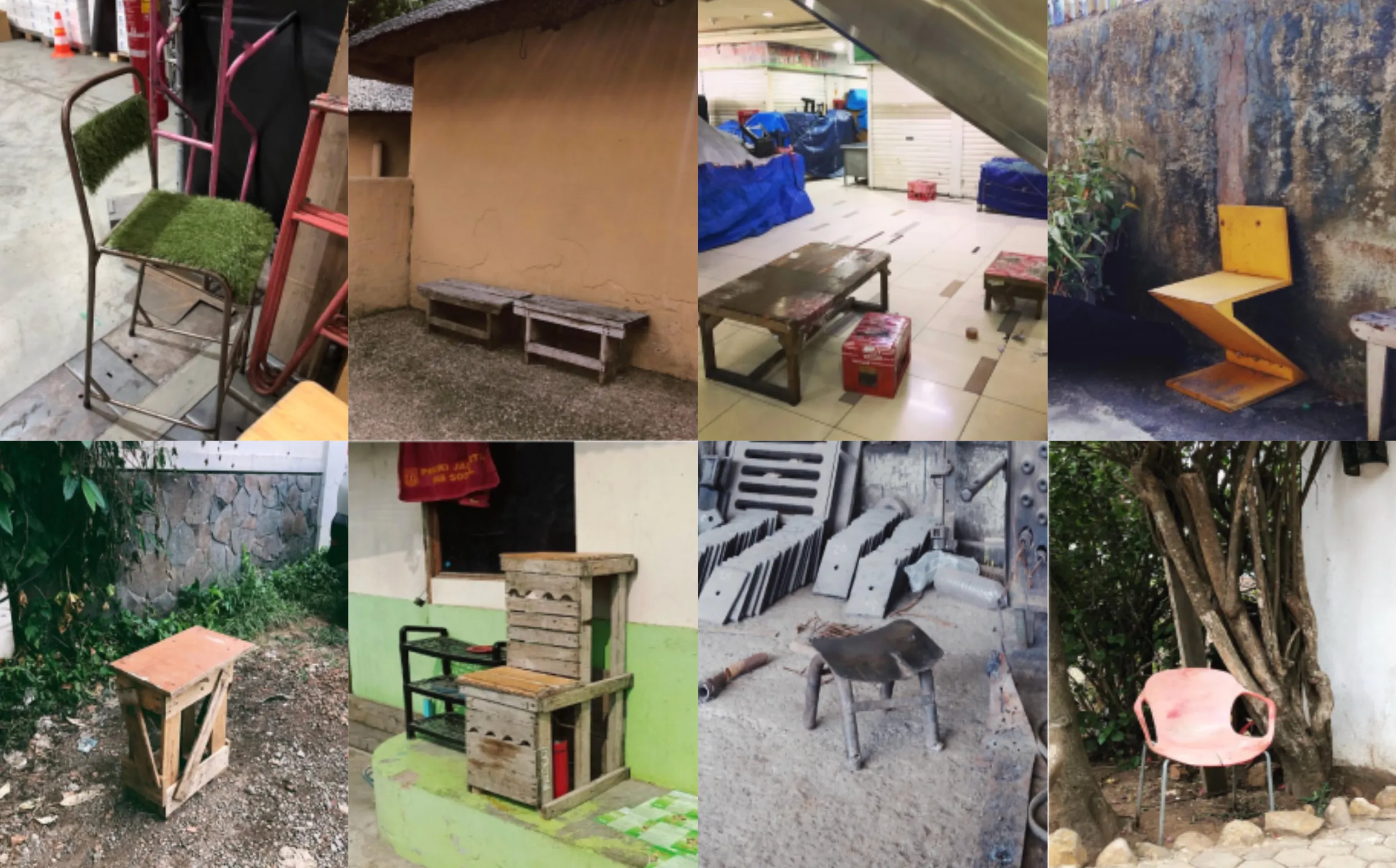 My friend Hilwa came to me one day with an idea for a chair exhibition. She showed me photos of jugaad furniture that street and homeless communities had built from scrap wood, broken pipes, and discarded parts, almost like Frankenstein chairs assembled from what the city left behind. At first I saw it as a nice visual concept but not very interesting for me. But someday, I was sparked with idea from the Babblin project. I began to wonder what would happen if I wanted the chairs to act more like a medium, almost like a 'ouija board' for daily life in Jakarta?